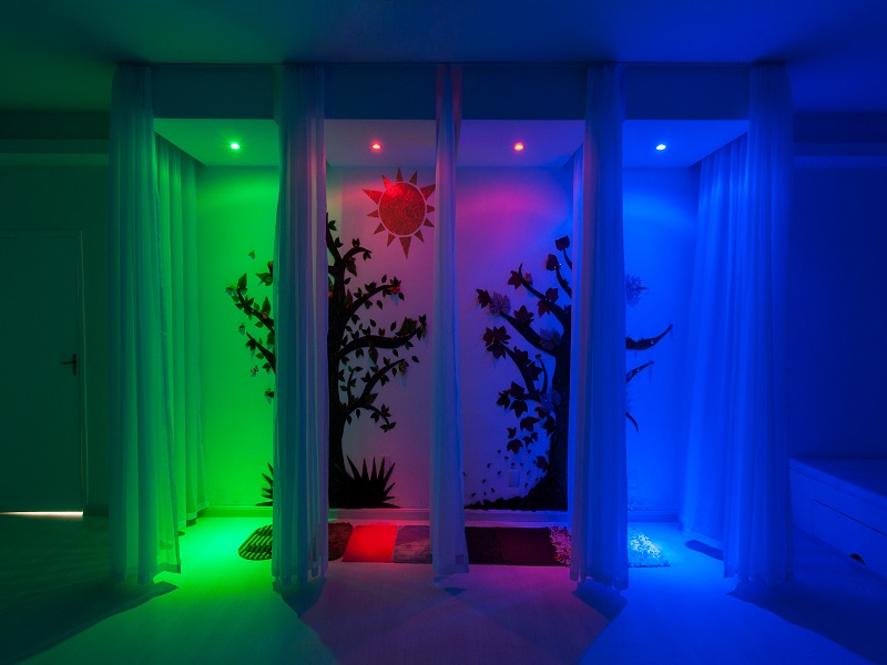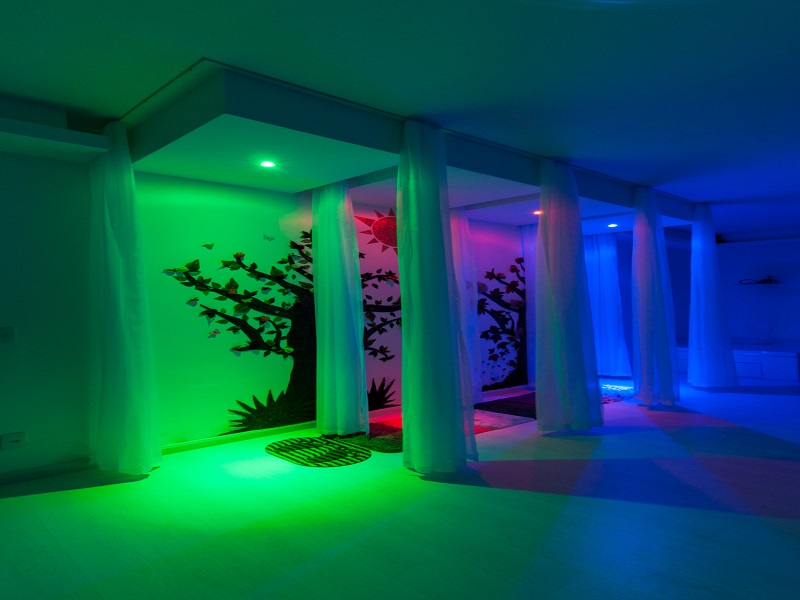 [+]Informações TécnicasA iluminação da entrada sensorial cria o conceito dos temas para os ambientes. É possível caracterizá-los pelas escolhas das cores de cada divisão. É possível criar temas como: Estações do ano, datas comemorativas, climas, entre outras. As luzes são acionadas através do módulo de interface, via controle remoto.