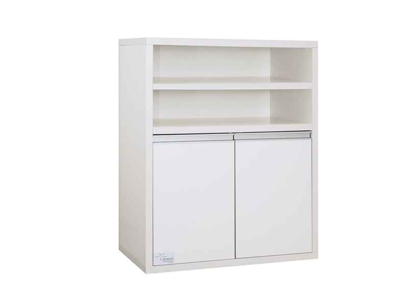 O Armário Multimídia é manufaturado em MDF e serve para acondicionar o computador, os controles da sala, os óleos essenciais e demais objetos oferecendo ainda espaços para materiais diversos.