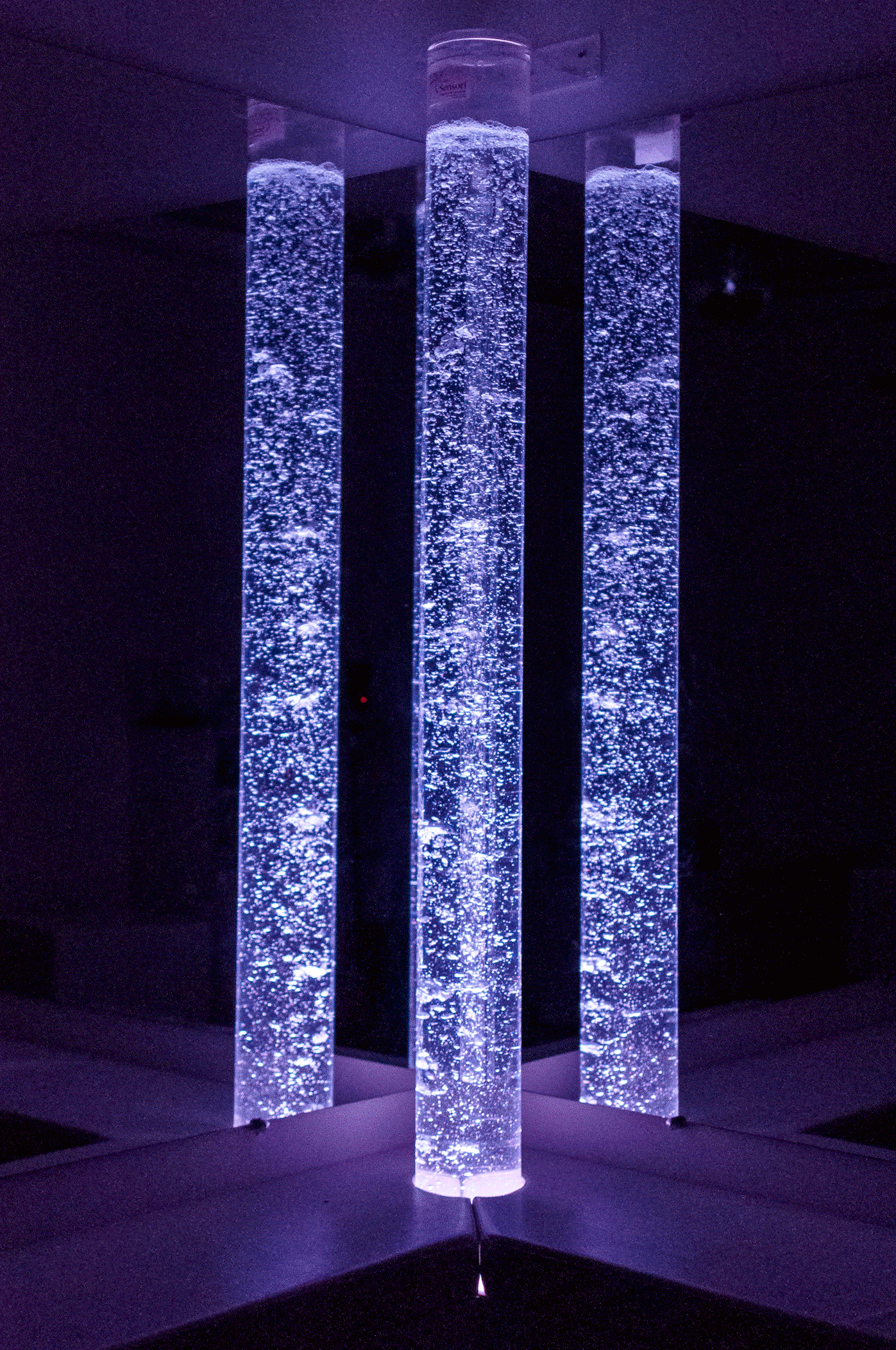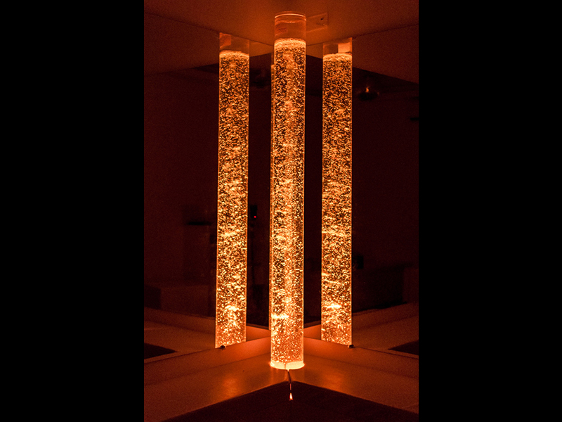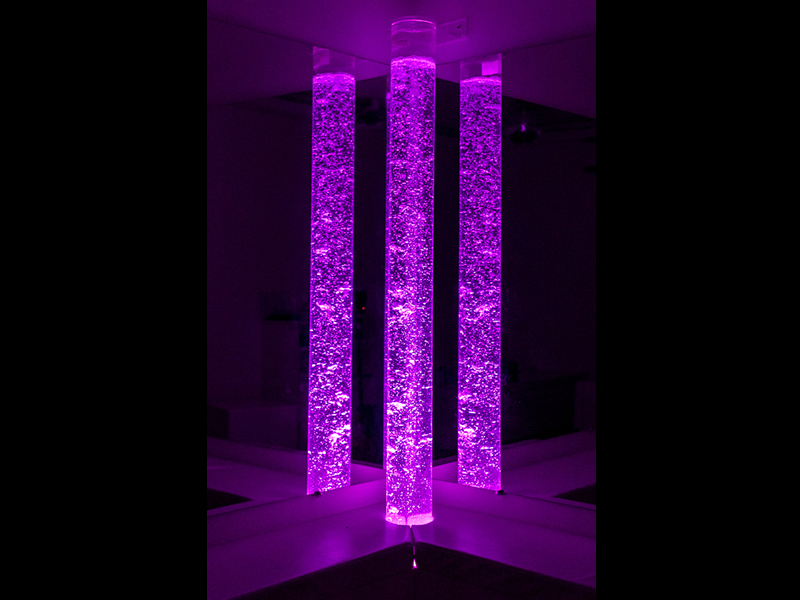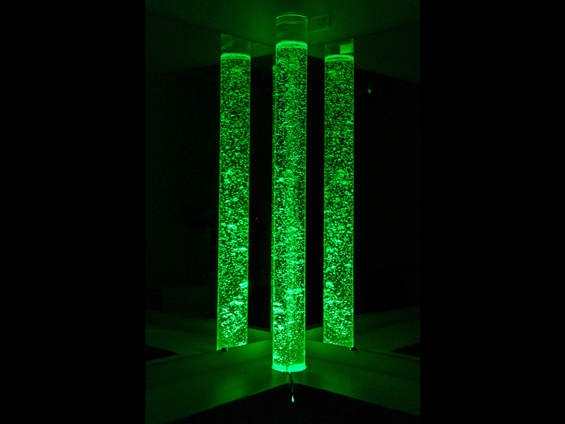 [+]Informações TécnicasO Tubo de Bolhas é composto de água em seu interior e foi desenvolvido para emitir simultaneamente, uma iluminação colorida e vibrações.