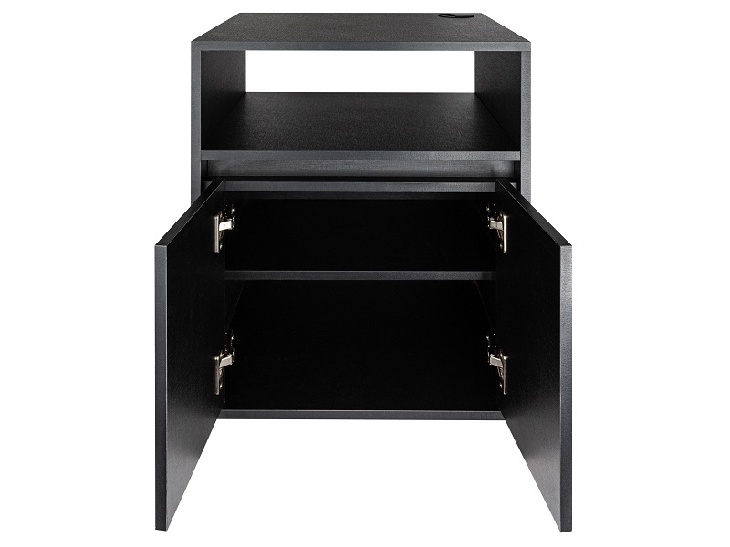 O Armário Multimídia é manufaturado em MDF e serve para acondicionar o computador, os controles da sala, os óleos essenciais e demais objetos oferecendo ainda espaços para materiais diversos.